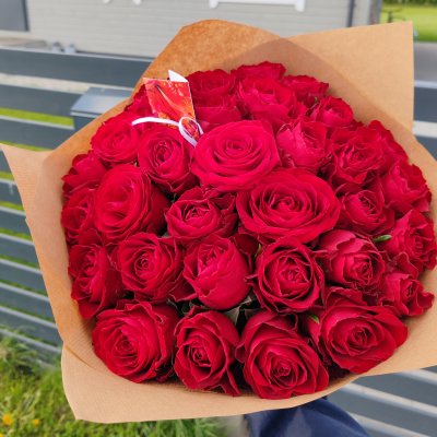 Красные розы 40 см в красивой упаковке